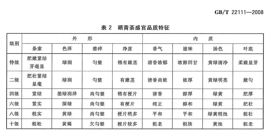 但标准中并不只有以上内容,它对茶叶的采摘、原料及散茶的品质均划分了定级指标,比如鲜叶采摘按照嫩度有六级指标(特级和一至六级),其中特级鲜叶指一芽一叶占70%以上,一芽二叶占30%以下。一级鲜叶指一芽二叶占70%以上,同等嫩度其他芽叶占30%以下。