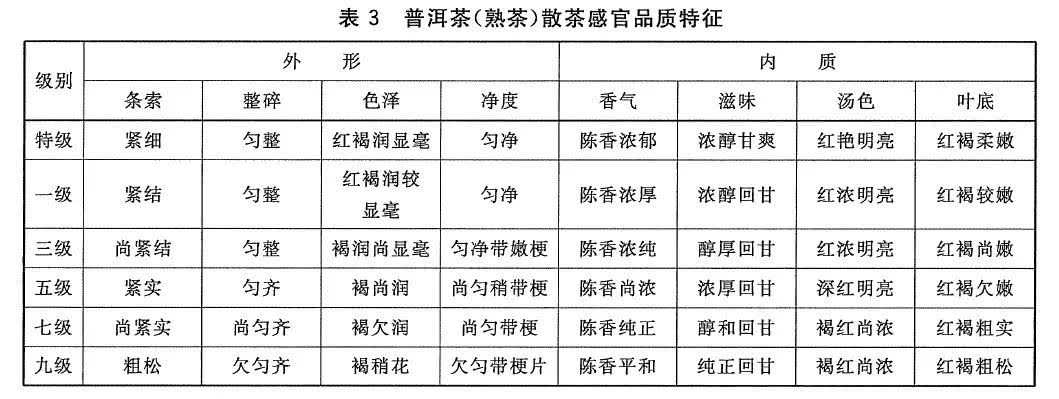 普洱茶原料和普洱茶(熟茶)散茶的品质特征图片源于GB/T2111-2008标准