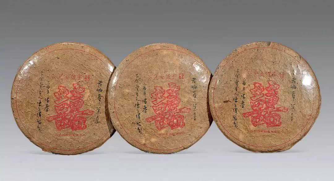 乙酉年喜字号普洱茶(三件),单件直径2厘米,古树茶,北京保利承拍2017年11月5日以1150元人民币拍卖成交