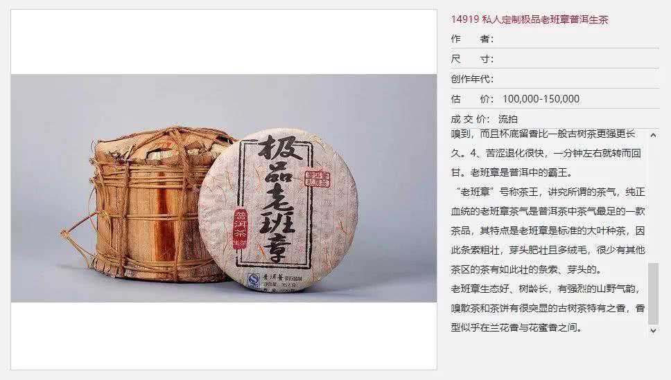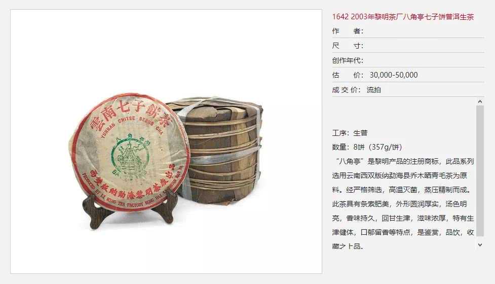 某拍卖行普洱茶流拍记录