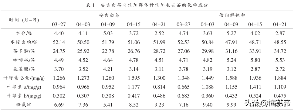 随着安吉白茶声名鹊起,安吉白茶树种也被逐渐引种到全国各地,河南省也有部分引进,更有人以安吉白茶和信阳群体种信阳毛尖的化学成分做了比较。