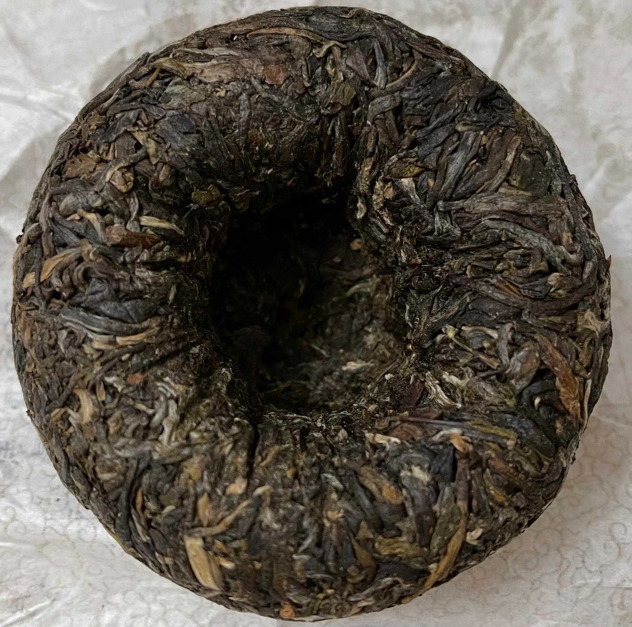 干茶:沱身较松,条索较紧结显白毫。干嗅烟香较不显。