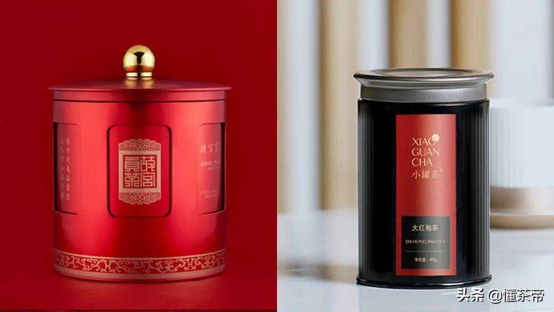 一款是在市场营销上非常成功的小罐茶家的大红袍,另一款是武夷星故宫贡茶养心花香大红袍。