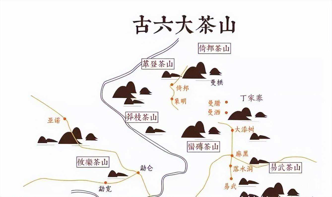 古六大茶山:易武(漫撒)、倚邦、攸乐、莽枝、蛮砖、革登。