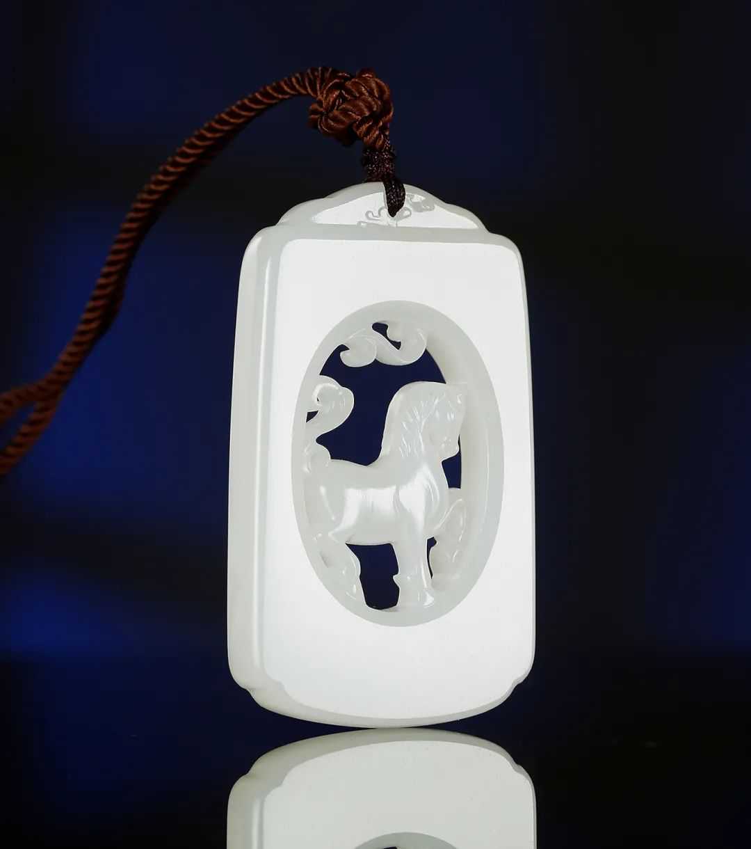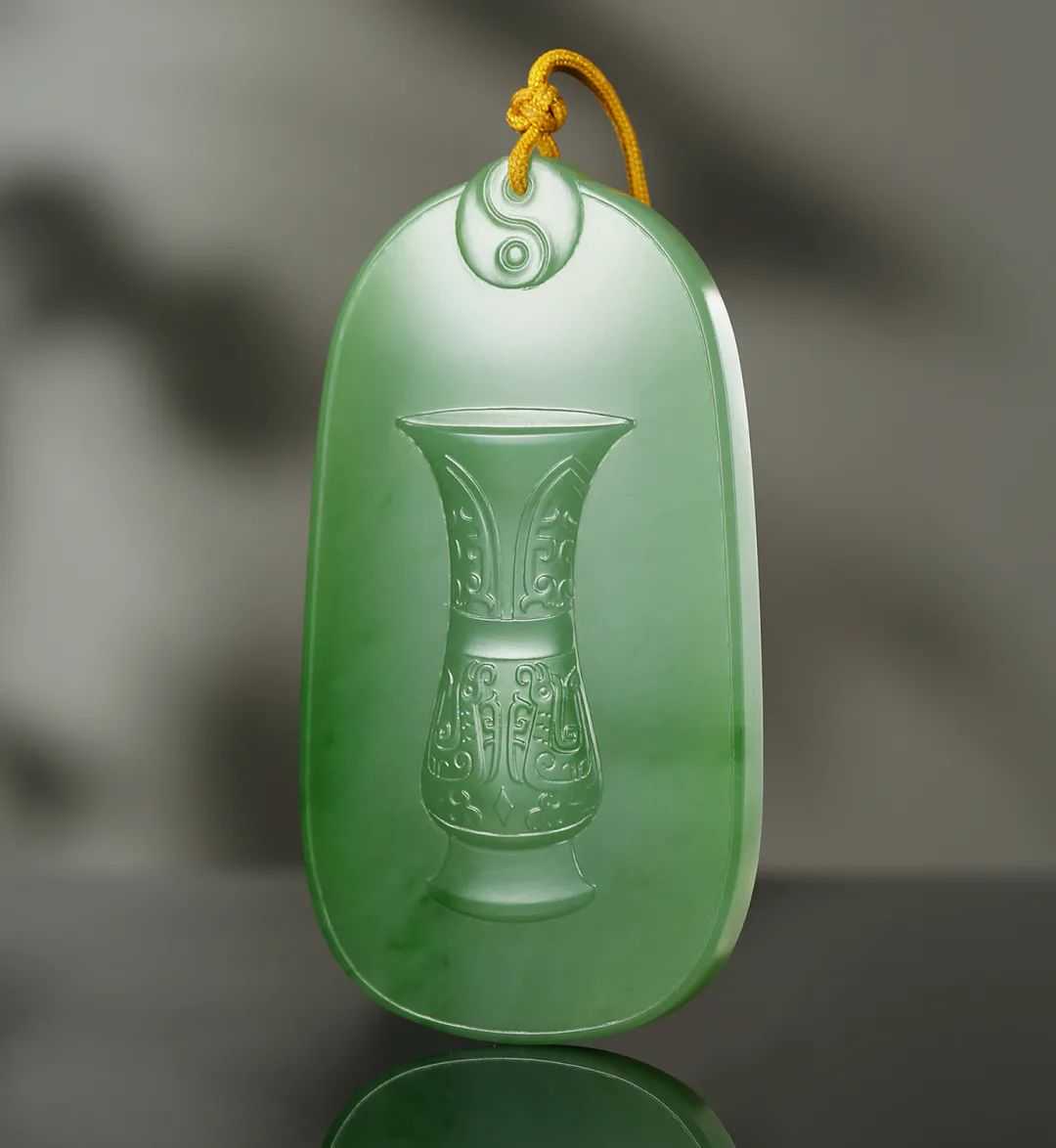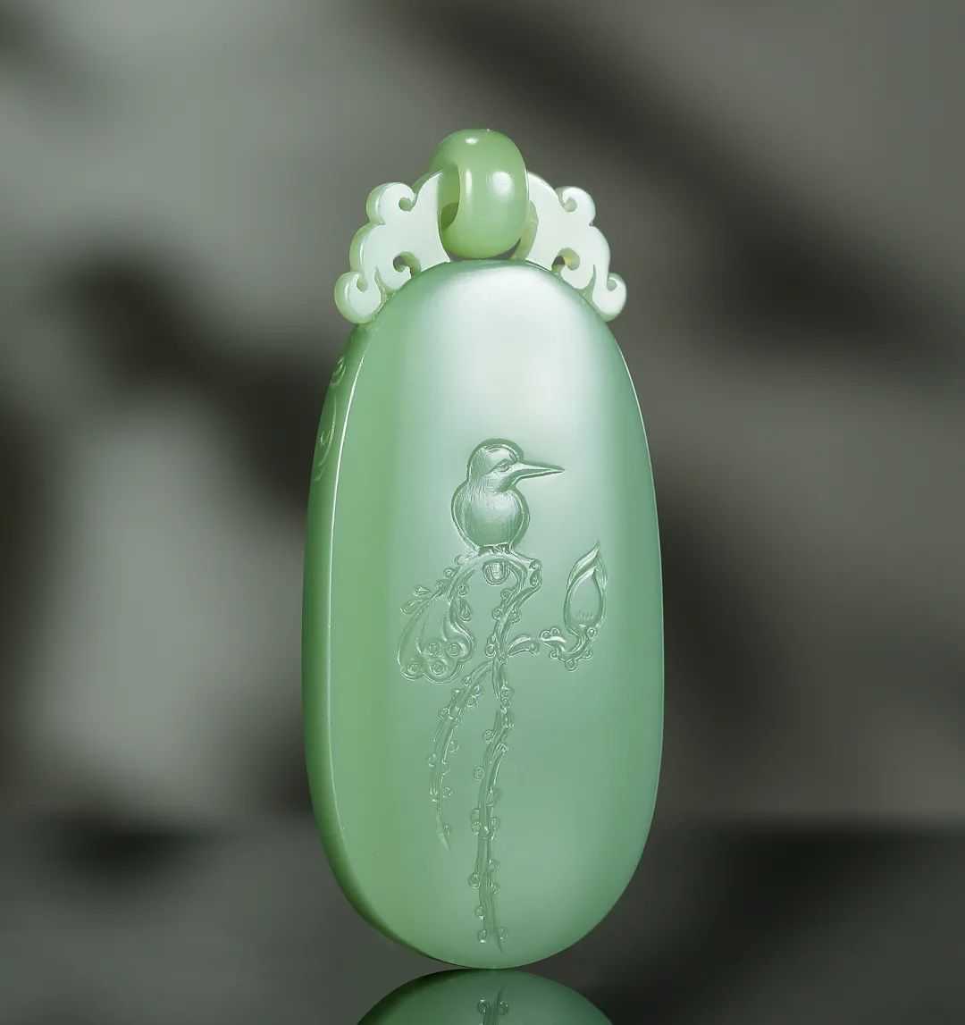 张静鸭蛋青碧玉荷鸟图活环平安牌