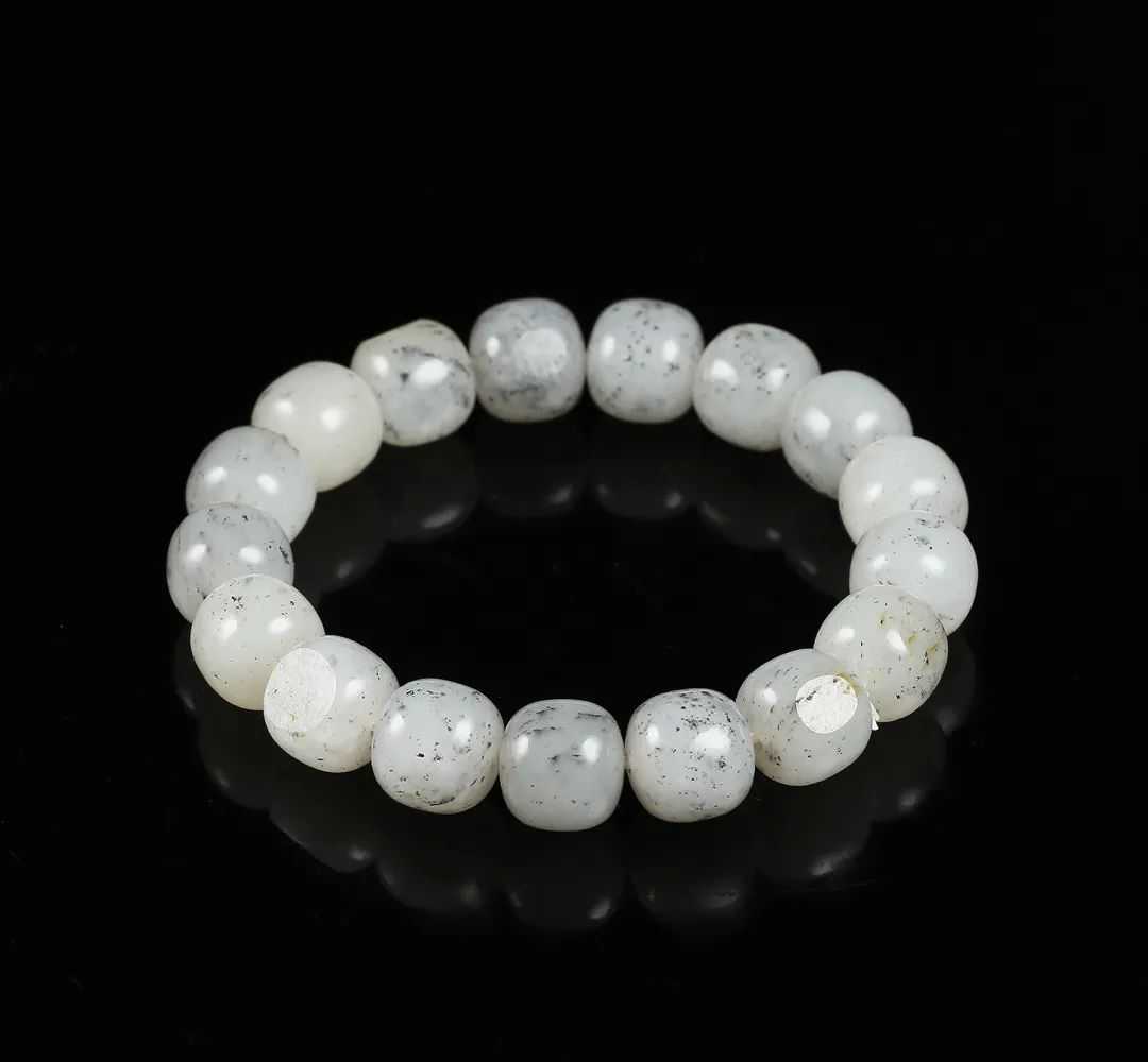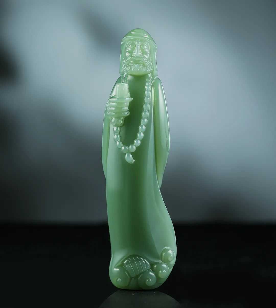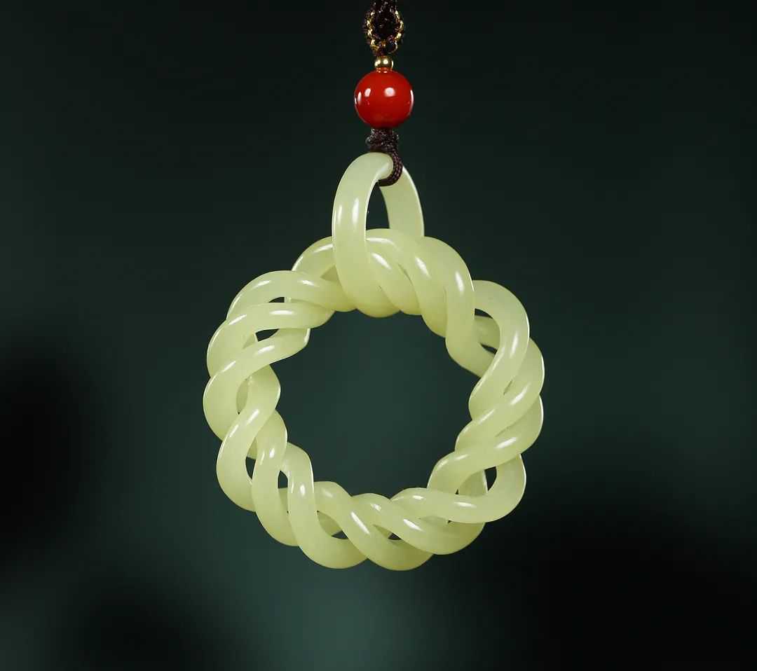 张静鸭蛋青碧玉荷鸟图活环平安牌