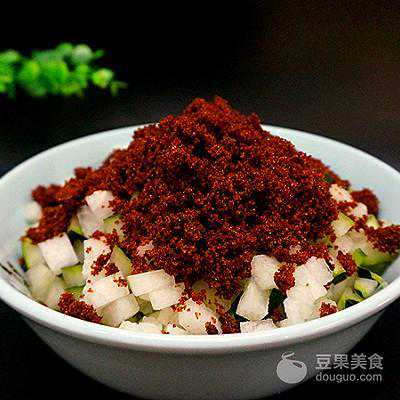 2、连籽带皮切成小丁儿备用,稍微要切的小一点再放进一个大的容器里