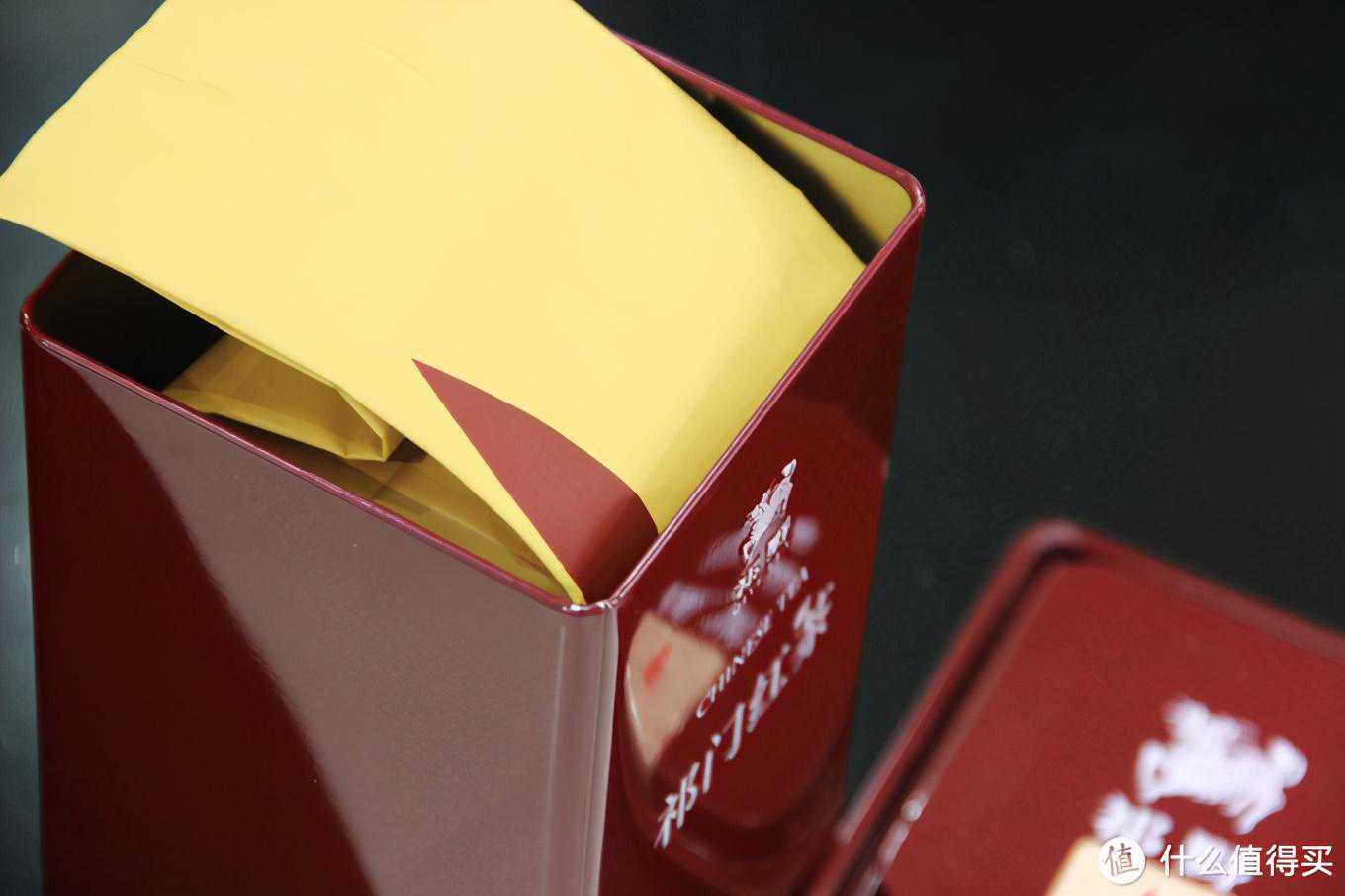 1、包装祁野的包装罐是真的好看,深红色方形的铁罐子,一看就非常大气,包装上的图案也很简洁。内部是一个很厚实的铝箔袋,一袋装的满满当当,单从外观颜值上看,这款茶叶如果用来送人是没有任何问题的,包装可以打95分,简约大方。
