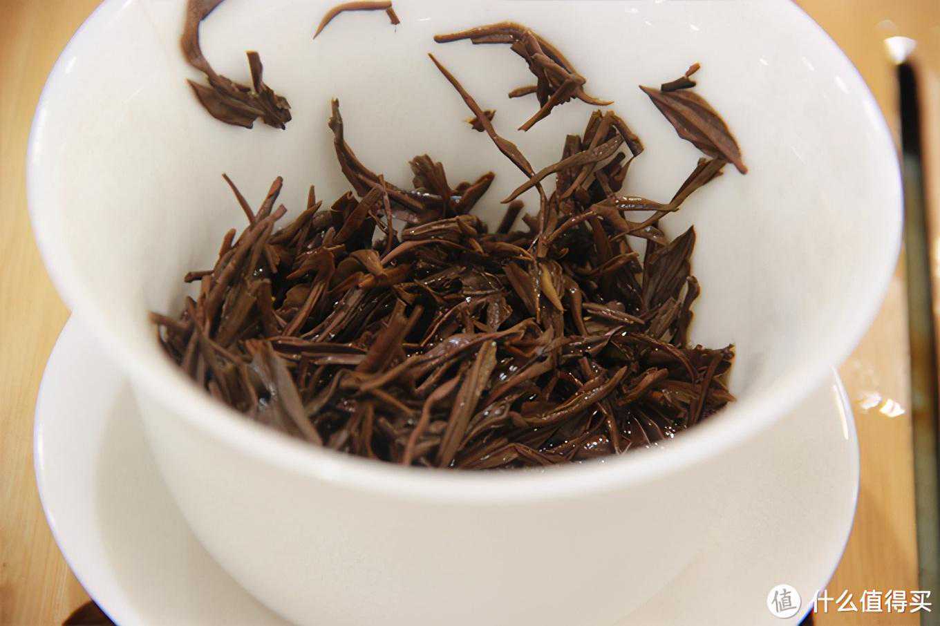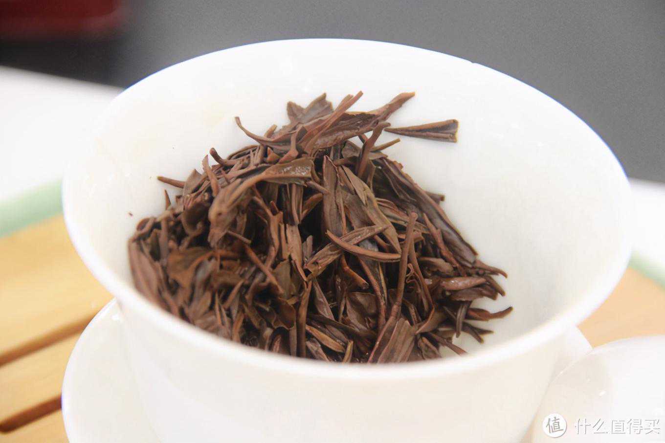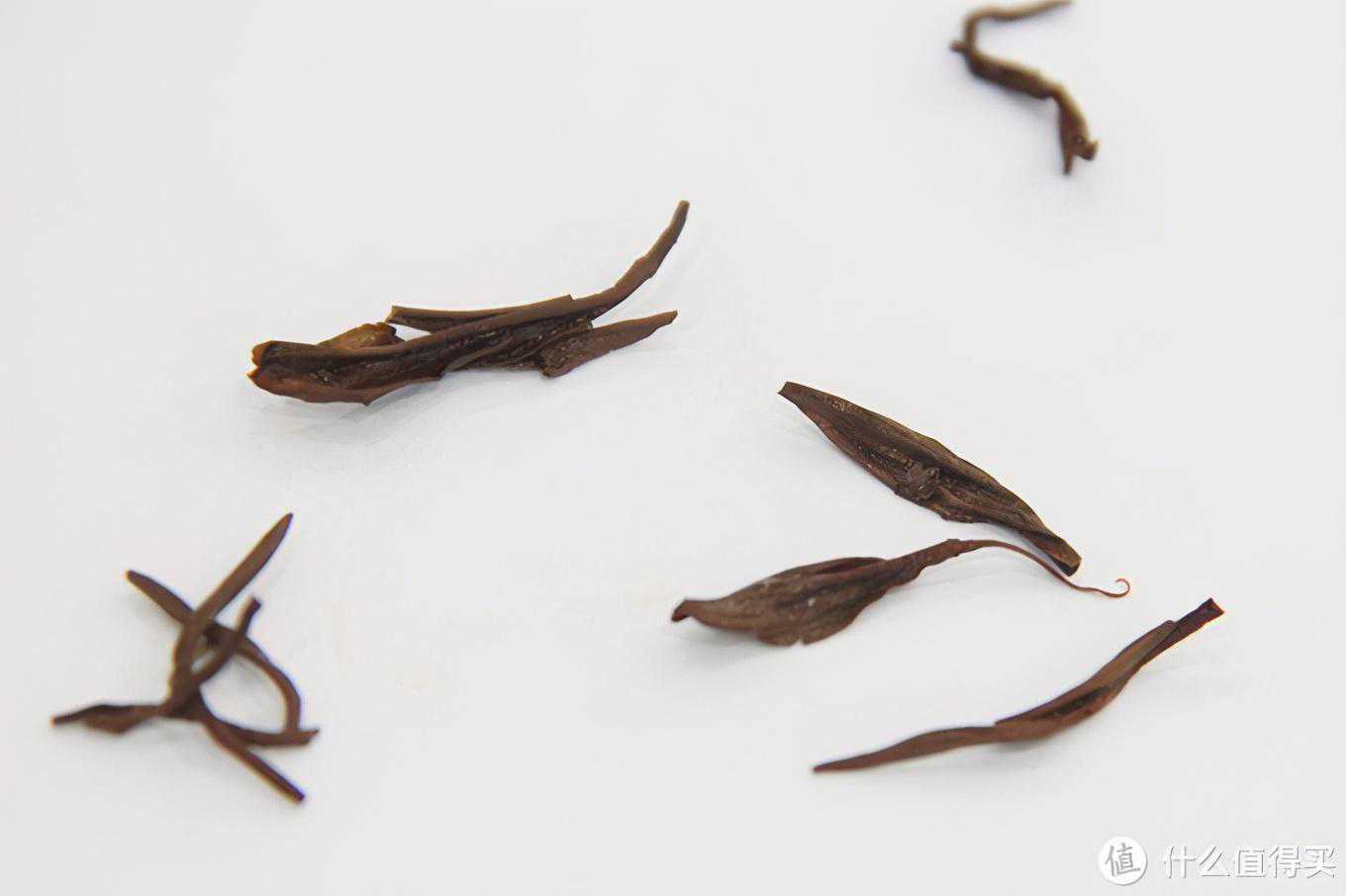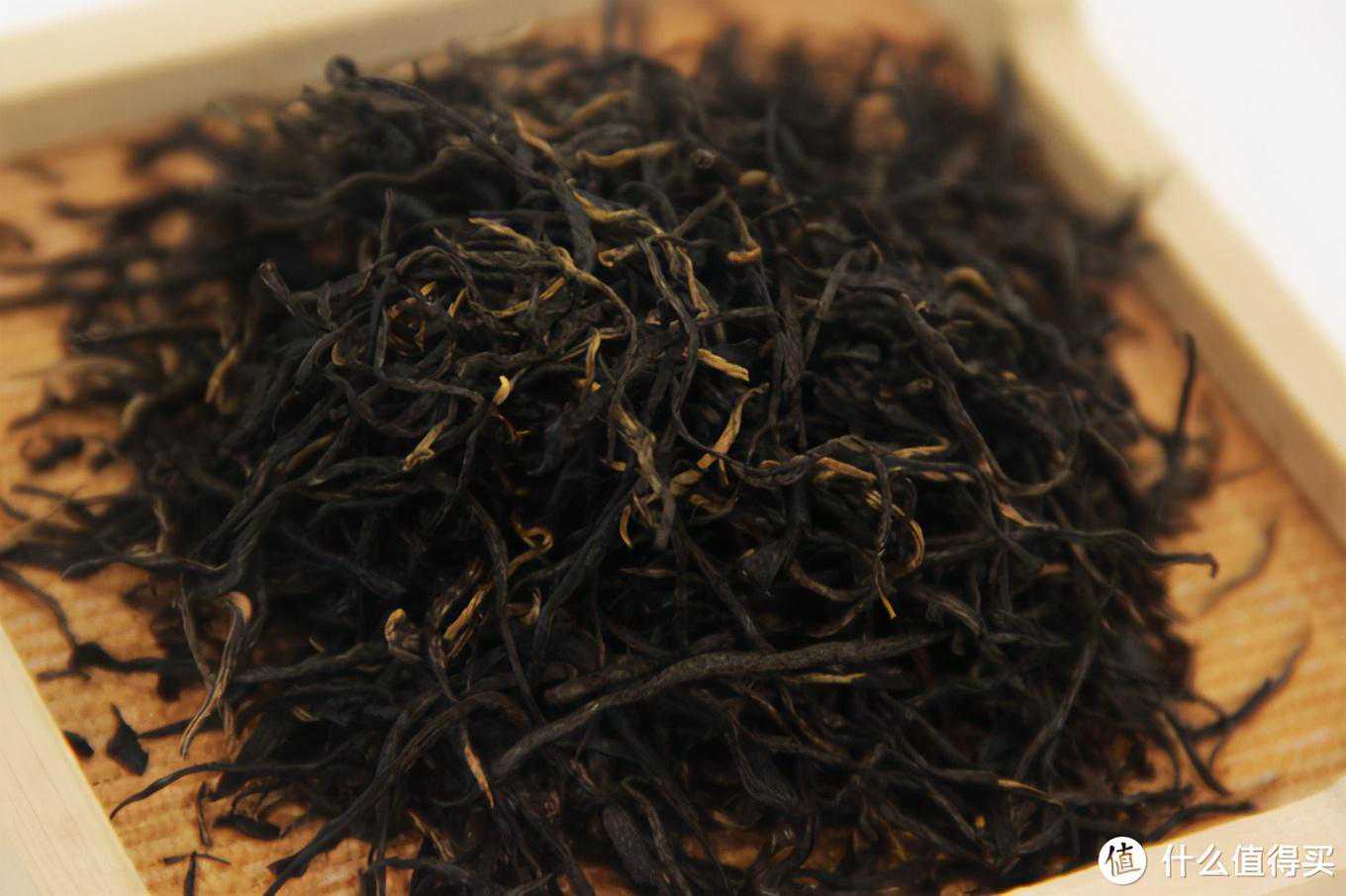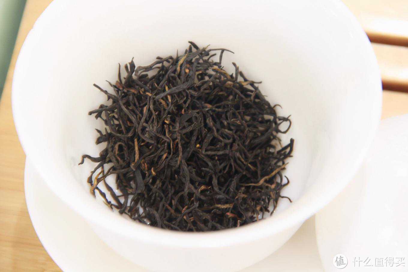 2.干茶和干茶的茶香其实这是我第一次尝试其红毛峰这种分支品类。祁红毛峰确实也比较少见,这款茶的干茶形状看起来应该介于香螺和金针之间,比金针要卷曲一些比香螺要平直一些。颜色乌润,有金色茶毫,茶叶整体看起来比金针要粗壮肥大一些,肯定不如金针那么嫩了,观感上却也很不错,干茶得分90分。