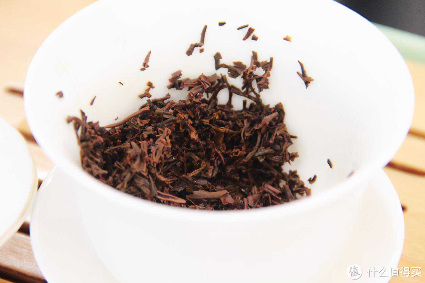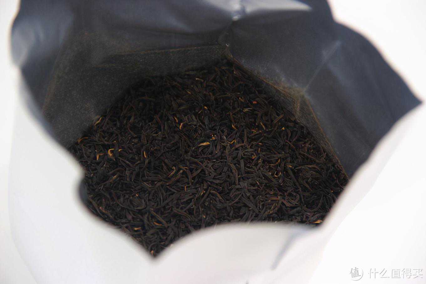 2.干茶和干茶的茶香这款是工夫红茶,干茶是比较碎的颗粒状,整体看来比较条索比较均匀,大小、长短比较一致,没有不匀整的状况。整体上是乌润的黑色,,干茶的油润感不错,质感不错,间夹在黑色中略有一些金色茶毫隐现,虽然比祁红金针要少得多,但是也算明显。整体看起来,这款茶的干茶得分可以打个90分。