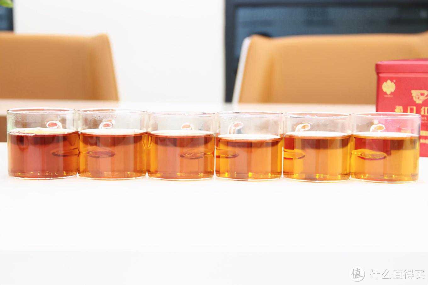 3.汤色、茶香跟上面测评过的3款茶相比,天之红的这款祁红汤色上红润程度要差一些,没有那么红,汤色是一种亮黄色,类似于正山小种的汤色。确认泡的时间也足够,但是确实就是没那么红润,可能这款茶就是这种特性了。汤色得分85分。