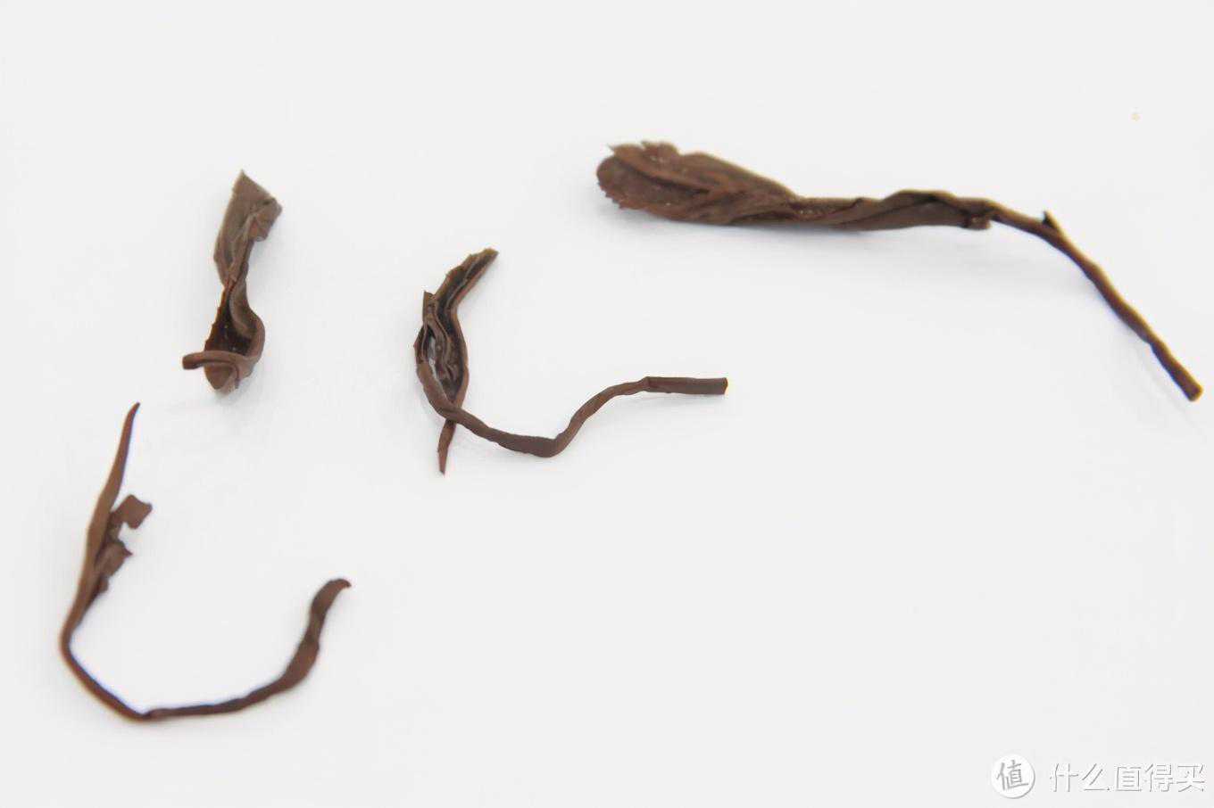 5.叶底叶底颜色上是红润的,色泽上不错,完整度也不错,叶形比上面两款祁红金针要大不少,除了叶子以外也有一定量的茶梗。整体大概90分左右,还不错。