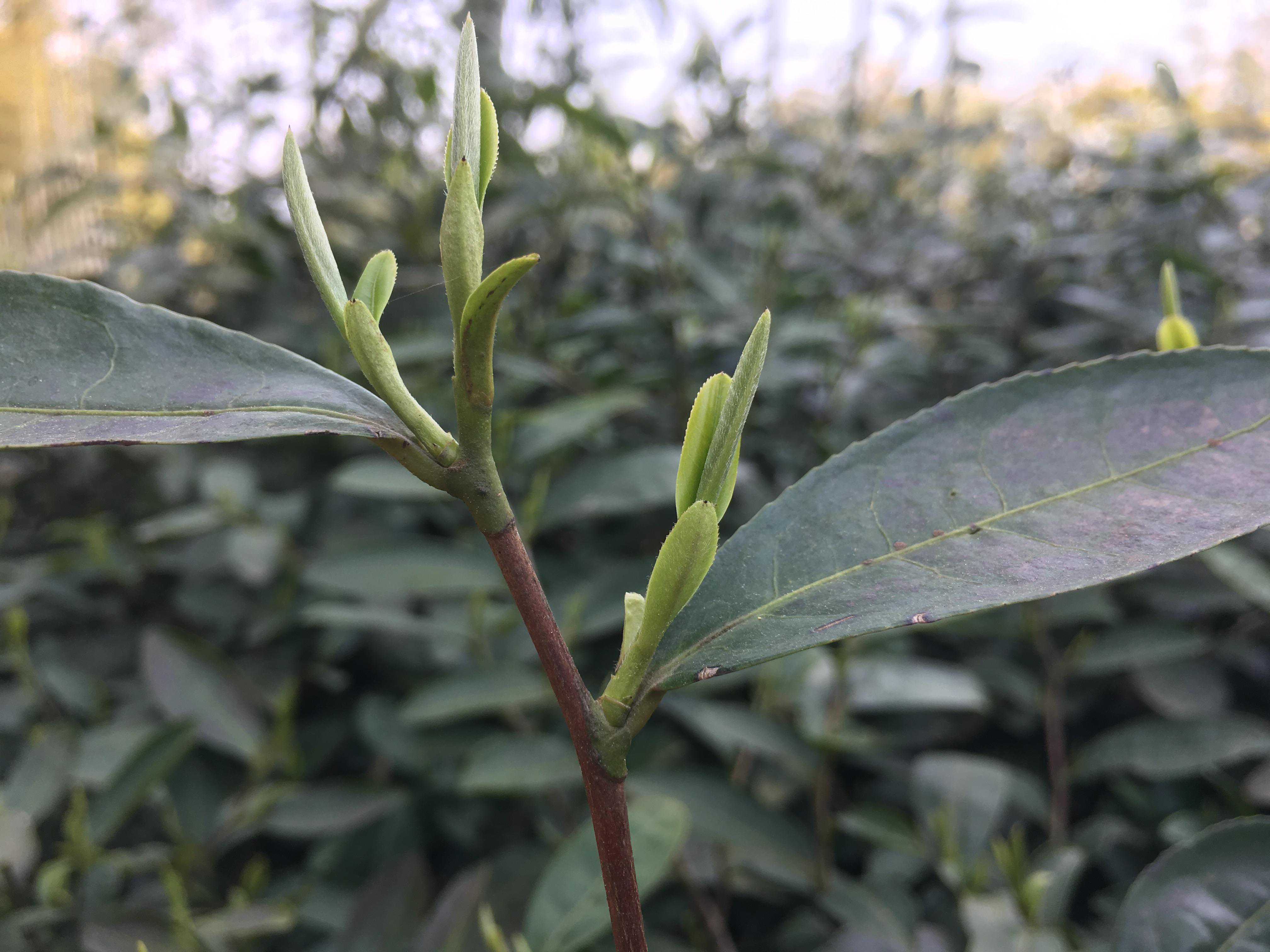 不过他又补充说,紫笋茶的紫芽,仅见于古茶山上遗留下来的野生茶树,这与品种、土壤、气候都有关系,山下平新开辟的人工茶园里,是见不到紫芽的。