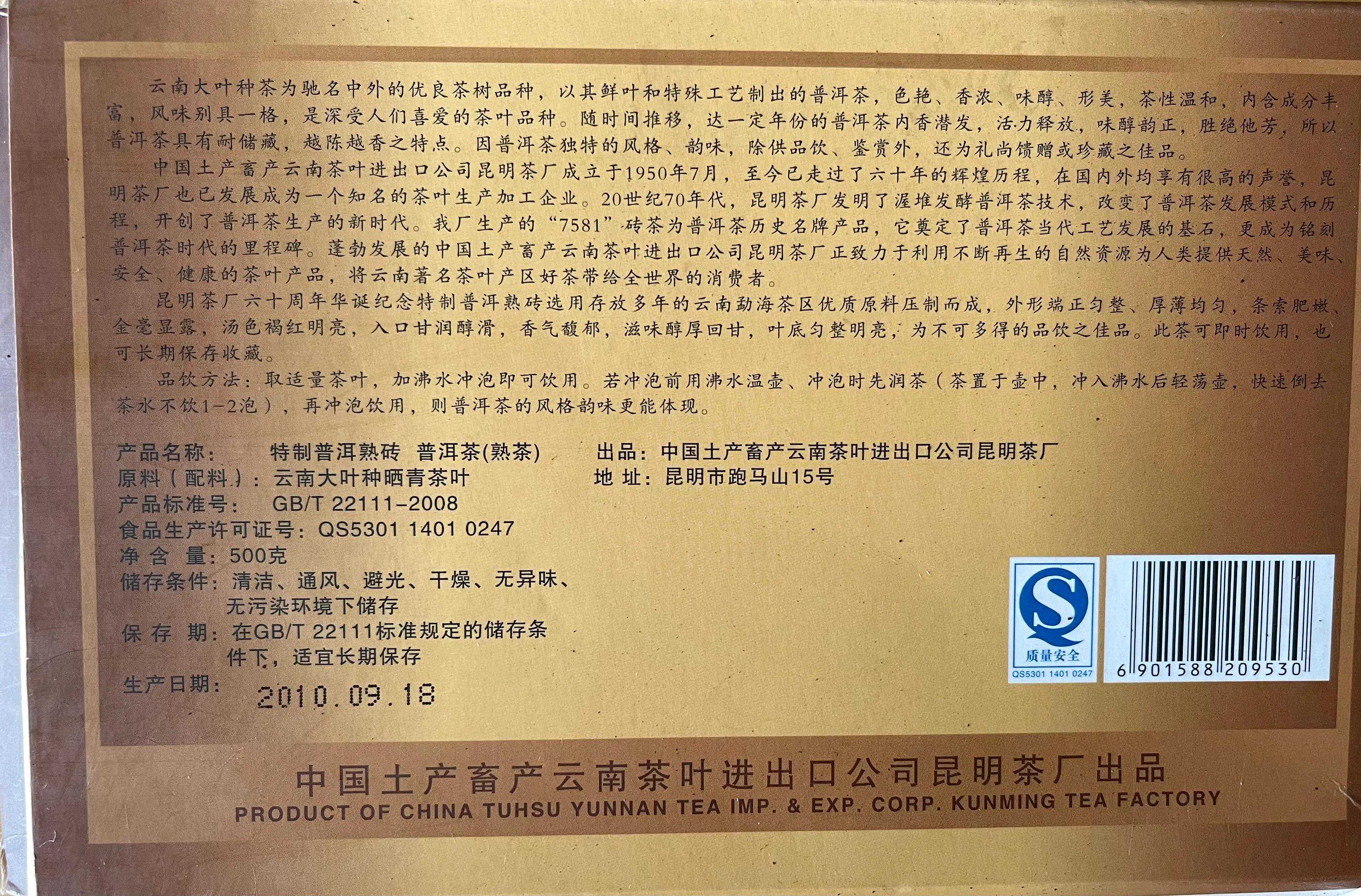 「昆明茶厂六十周年华诞纪念(1950-2010)」