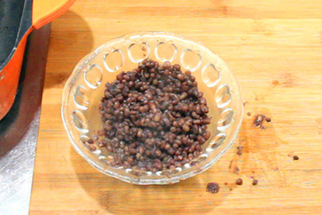 1.红豆提前浸泡一个晚上,泡软以后放入锅中,加入适量的清水,中火煮上30分钟,把红豆煮熟、煮软捞出来备用。