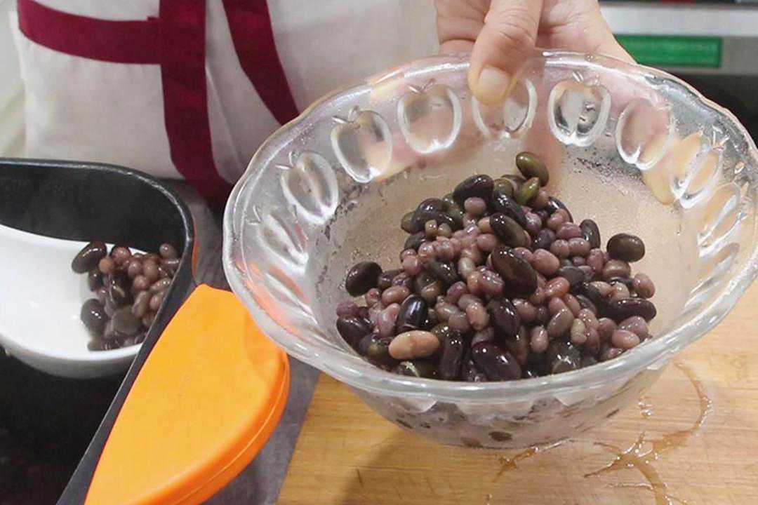 1.首先,我们准备适量的黑豆和红豆,提前浸泡一个晚上,方便后期快速煮熟。