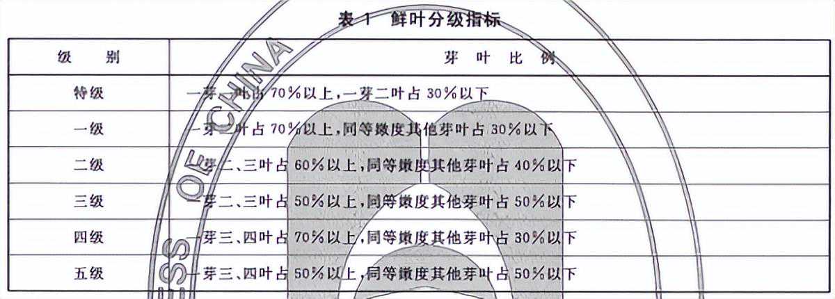 根据国标的鲜叶分级指标,普洱在国家标准中不存在全芽的制作标准,如下图所示。