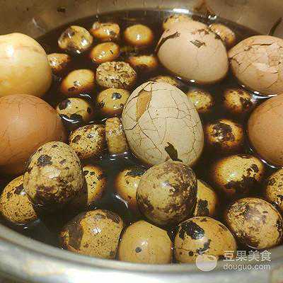 6、煮好的鸡蛋也捞出。敲碎方便入味儿。