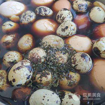 10、加香料和刚刚没过蛋的水。开锅后中火五分钟,之后调小火慢煮20分钟。