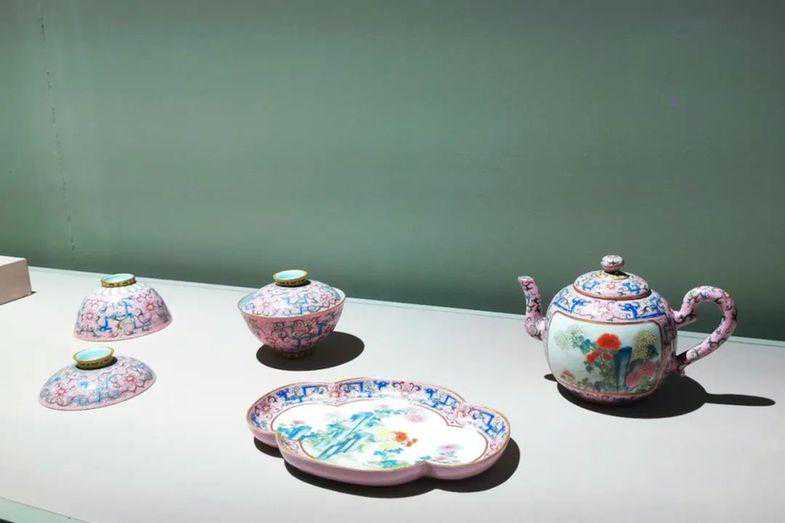 “茶·世界——茶文化特展”展出的清乾隆皇帝使用的粉彩茶具。图|李珅