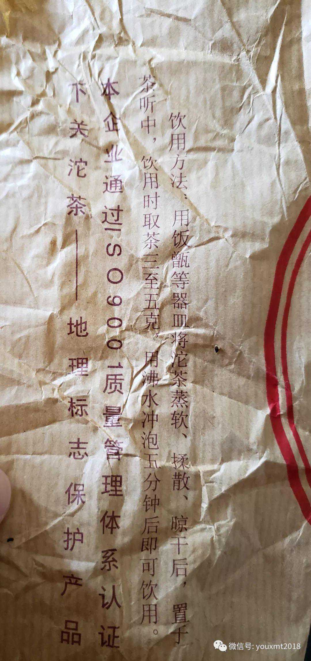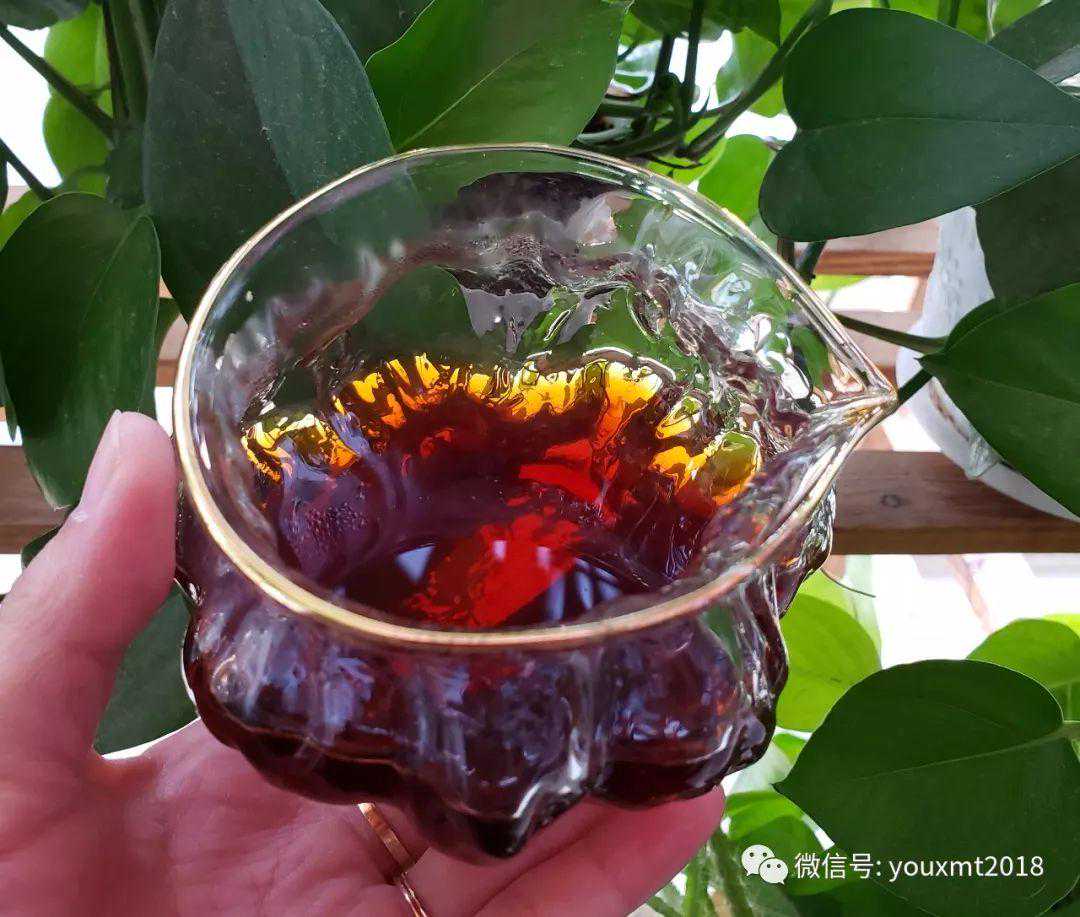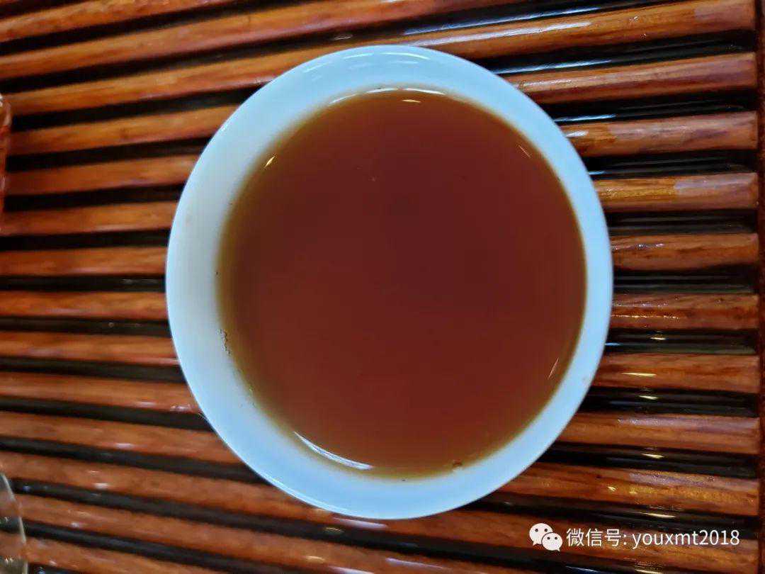 入口厚重,微有粘稠类似米汤入喉,喉韵悠长;焦香木香明显。个人觉得下关的消法沱非常好喝,年份短的比生沱出色。