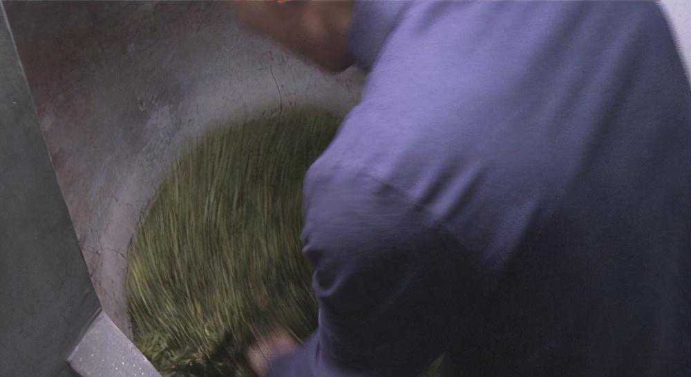最后一步辉锅是形成煇白茶盘花卷曲的外形特征的一道关键工序。锅温先高后低,随着干燥度的提高,温度则从100℃逐渐降到35℃左右,每次投放量为两锅二青,双手推炒,手势渐轻。辉锅所需时间较长,一般需要三到四个小时,一直炒到茶叶卷成珍珠式圆形颗粒,辉白“起霜”为止,这就是“前岗煇白”名字的由来。