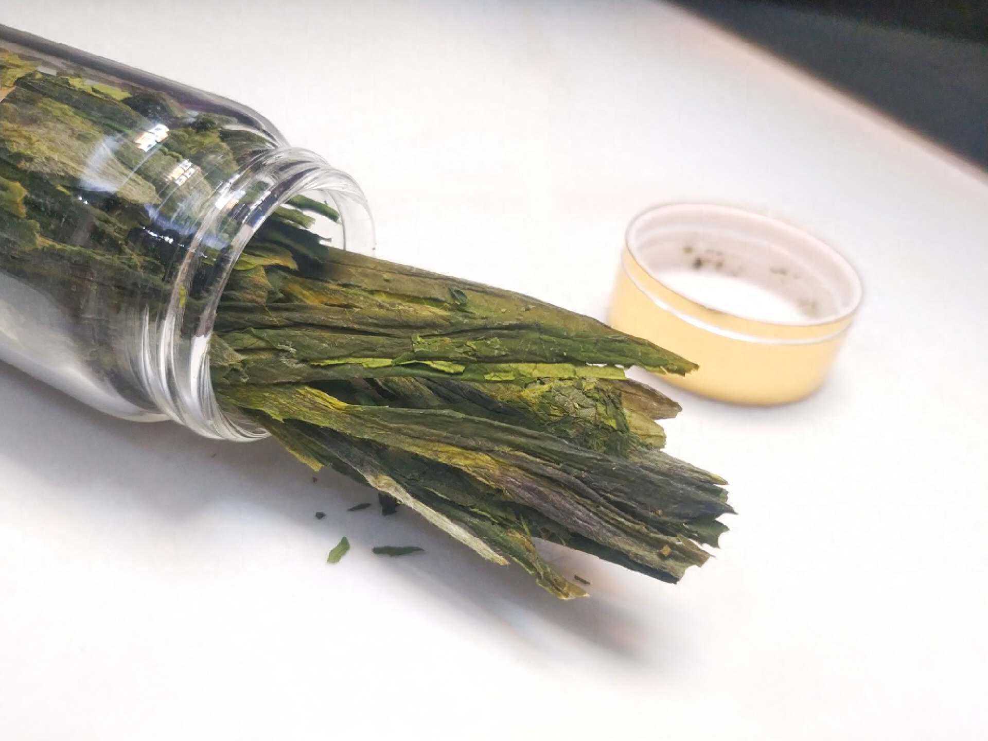 我们来看一下茶叶本身。太平猴魁茶叶外形扁平挺直,与其他茶叶相比显得更为魁伟壮实。它是有等级划分的,而我们手中的这款特级太平猴魁是其中最高级的品类。