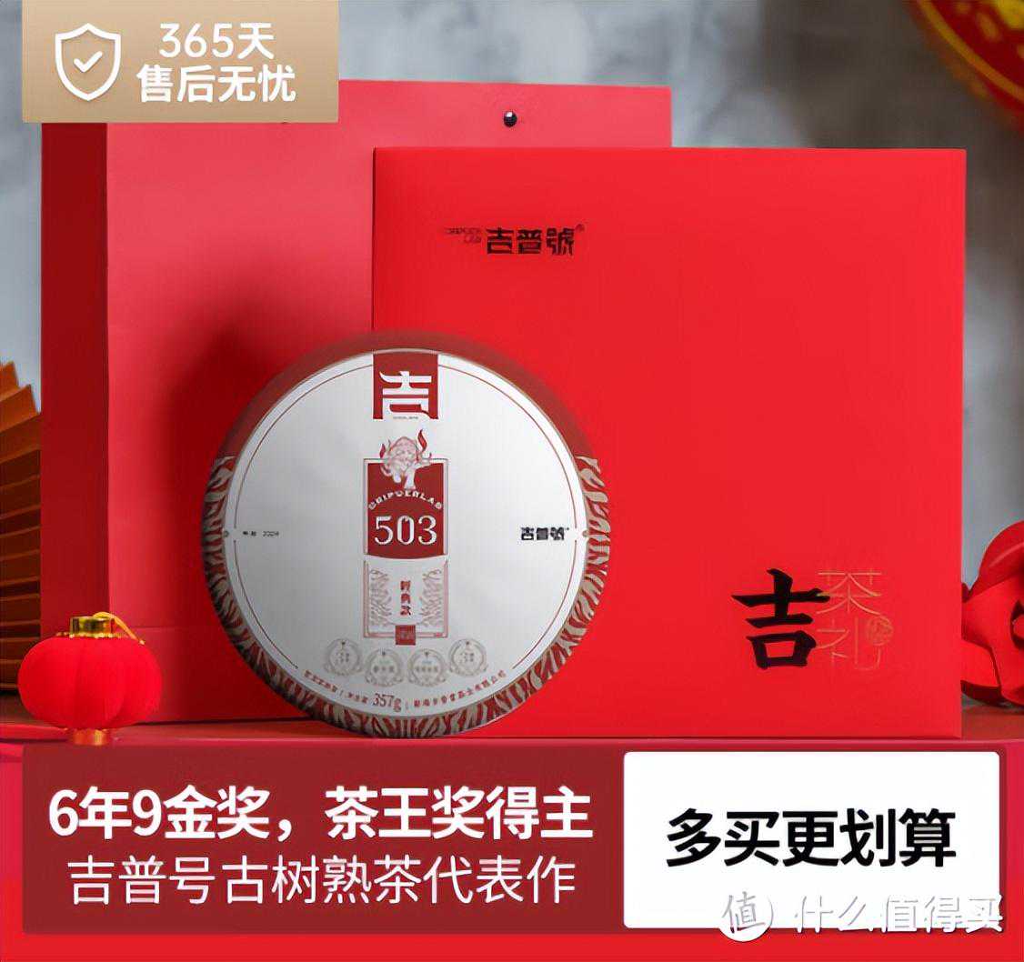 吉普号家大部分获奖茶品都有礼盒装,比如这款215317礼盒套装,一生一熟,都是卖爆款的经典茶品。包装大气,红红火火,吉字当头,送礼送吉祥,非常适合作为礼品选择。