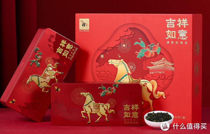 八马的吉祥如意特级清香铁观音礼盒,喜悦红色礼盒品质茶礼,方正盒型,中国红色调,送礼大气体面。