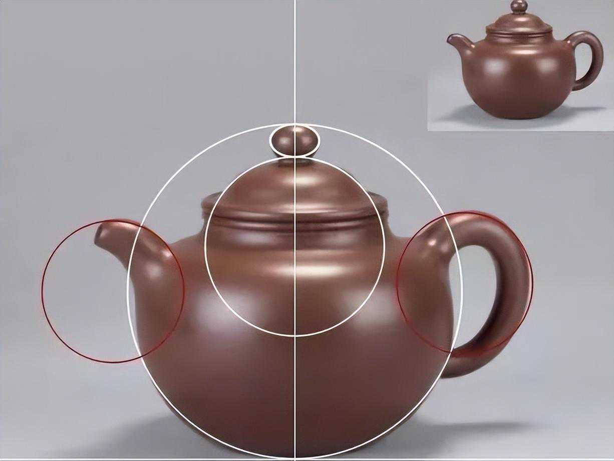 乍一看和宫灯壶有点像,但其实细节之处可见玄机。壶身、壶盖、盖钮,壶把,都是统一的圆球形,甚至壶嘴也设计成圆形的一部分曲线。