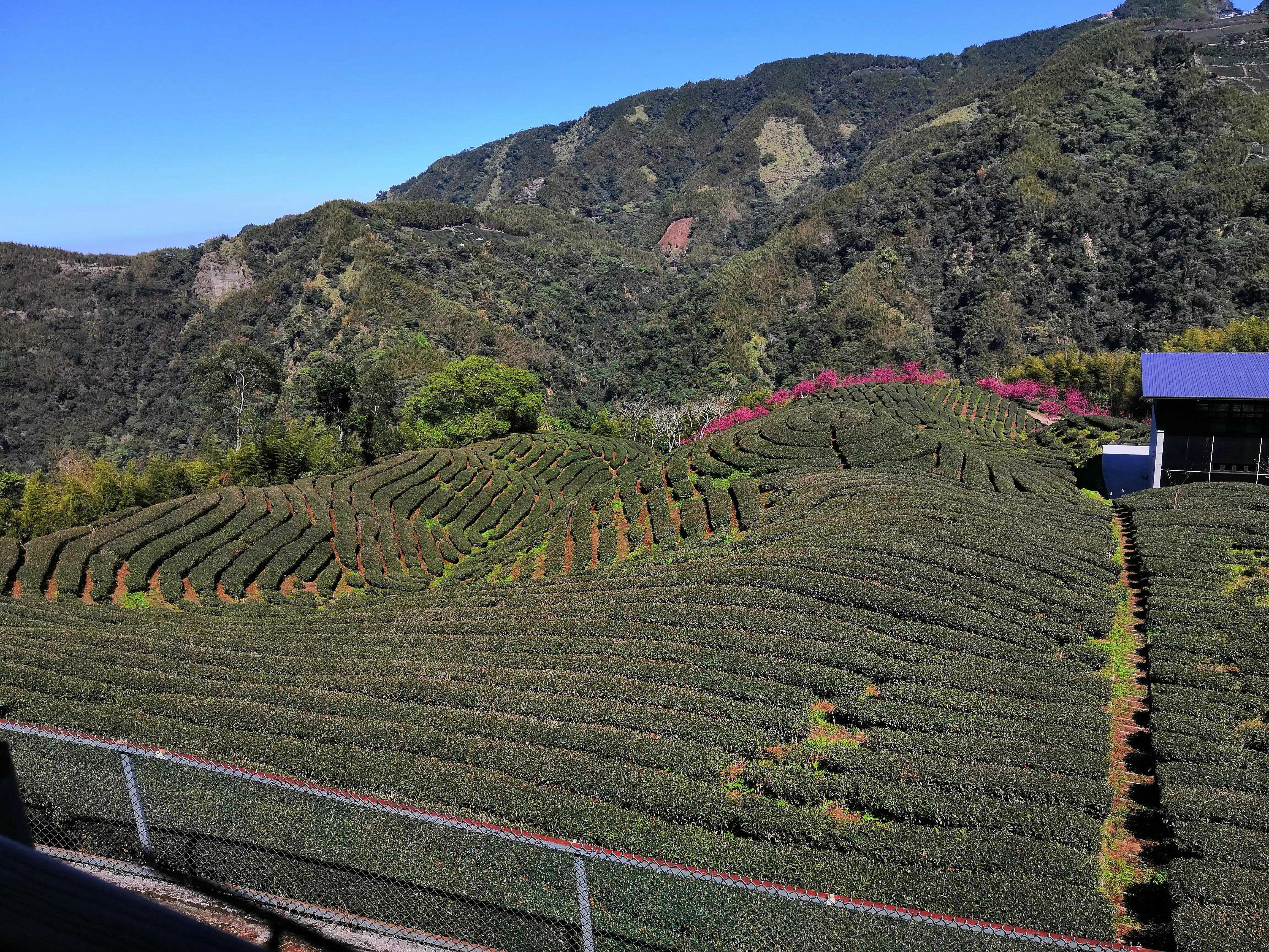台湾的地理位置与气候适宜种茶,高山丘陵茶山也随处可见,我们随台湾朋友游览了八卦茶园,看云雾缭绕间的茶园碧绿苍翠,茶农在茶园里辛勤耕耘。