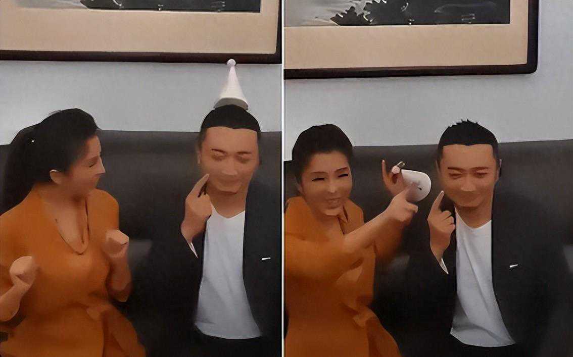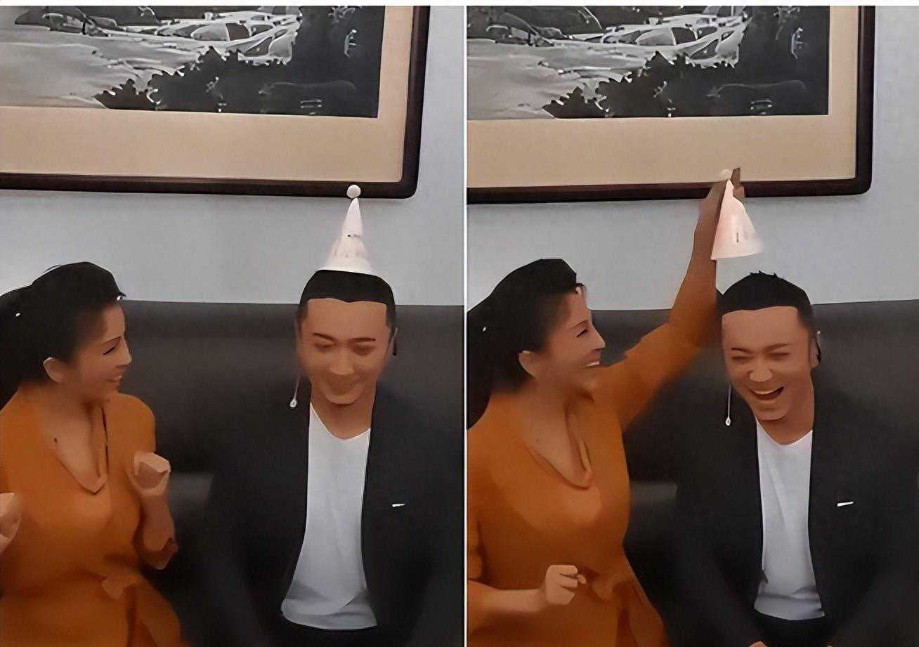 这时,朱迅从旁边接过生日帽,戴在了尼格买提的头上。正当尼格买提高兴得张不开嘴的时候,朱迅突然吻在了他的脸上。