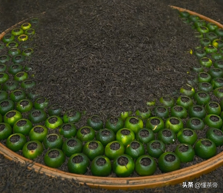 小青柑所填充的一般是精选上好的普洱熟茶,这样才会和新会柑皮一起才能在后期存放中,陈化出最相得益彰的口感和更加爽口品饮体验。