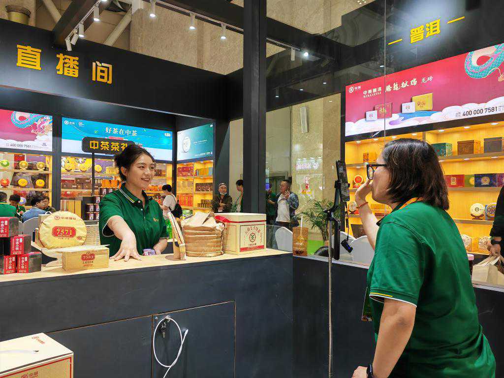 展会还专门设置电商直播区,许多茶企结合特色产品开展电商直播。南京女孩石鸿投身茶产业已久,这次专门带着她的直播团队来参会,负责推介合作商的茶产品。她说:“通过直播下单的也挺多,全国各地的都有。”