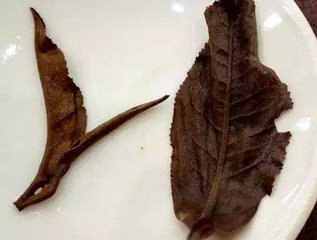 此外,还有一个小窍门可以鉴别古树红。可以将泡过之后的叶底拿出来看,茶叶张开后,用力拉茶梗是拉不断的。茶梗还会拉丝,就像我们吃莲藕一样,越老的丝越长,古树红茶也就有这个特点。
