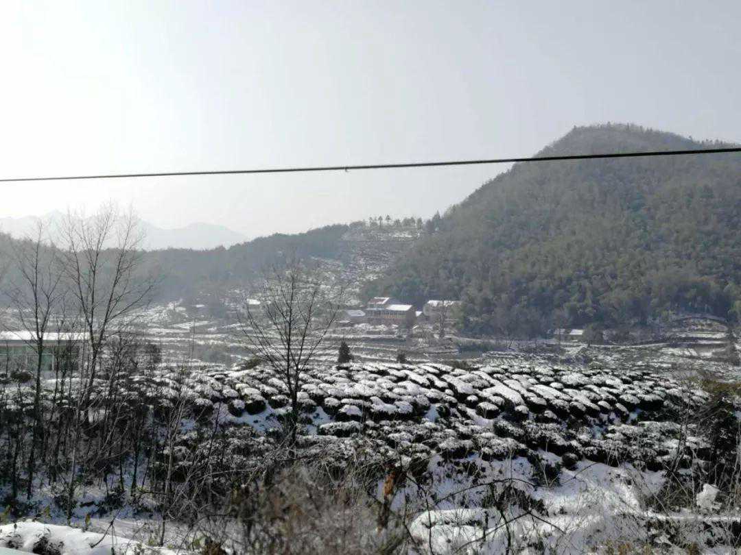 面冲再继续深入,山坡上开始积雪,道路侧面畸零地的茶园为大雪覆盖,这时候,海拔已经超过500米了。
