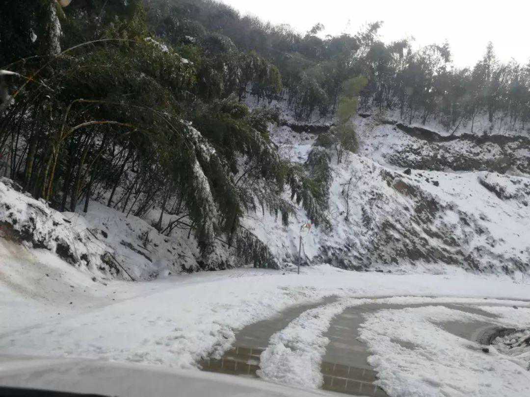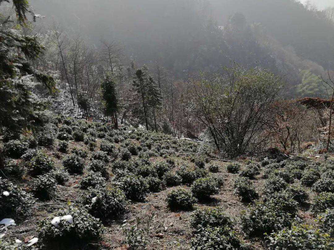莲花山有西莲、东莲两个村子,或许因为西莲位置背阴,气温明显较东莲低了一些,被大雪压弯了的竹子还没缓过来,茶树的树冠也几乎见不着绿叶;东莲的海拔则高一些,茶园环境更加险峻,除了主要的通行道路之外,多数的林地基本还处于冰封状态。