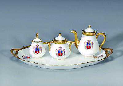 俄罗斯鎏金纹章瓷茶具中国青砖茶博物馆藏