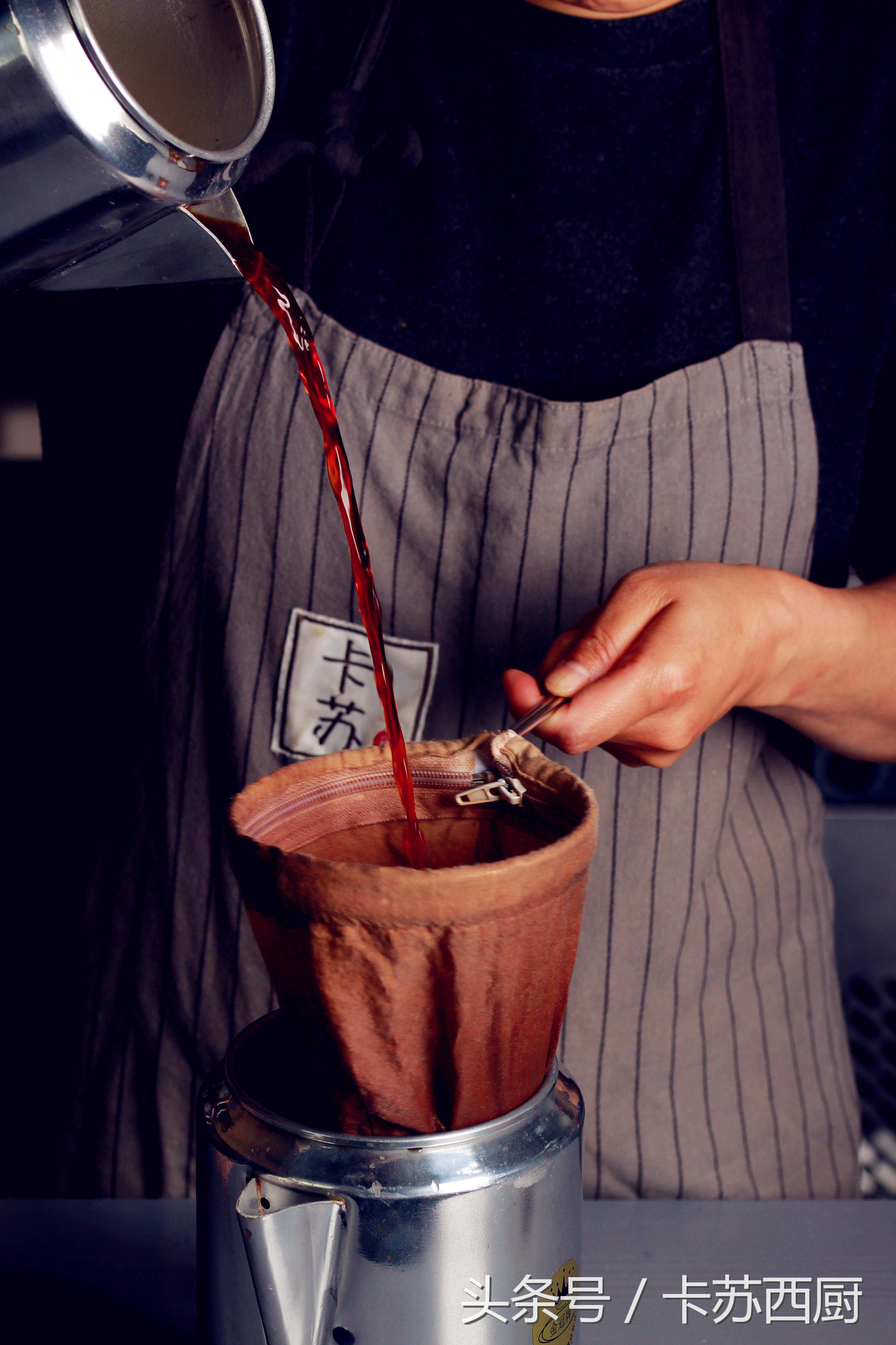 拉完4个来回后,盖上拉茶壶盖子,闷5分钟。之后,将茶叶滤袋取出,挤干茶汤后,把装有茶汤的拉茶壶放在拉茶炉上保温(拉茶炉1-2档可将茶汤保温在95度左右)。最后可以得到800ml左右的茶汤。