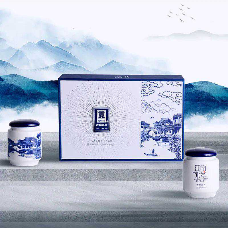 这款AA级西湖龙井定位高端,产自龙井村一级产区的群体种老茶树,甘醇鲜爽,整体滋味和香气远胜培育品种。陶瓷罐身绘有江南水乡图,典雅显档次,适合送长辈、领导。