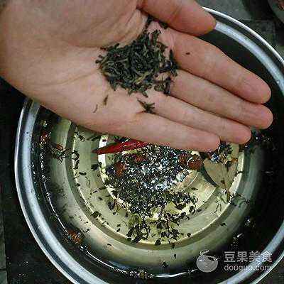 3、加水,所有香料全放锅里,加入茶叶,我加的茉莉香味的茶,太香了