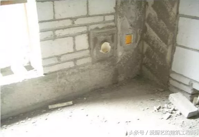18、任何情况下严禁在加气块墙体上任意打凿开槽埋管,必须用无齿锯切割,暗埋安装管并打压后随即用砂浆填实抹平后表面挂钉钢丝网。
