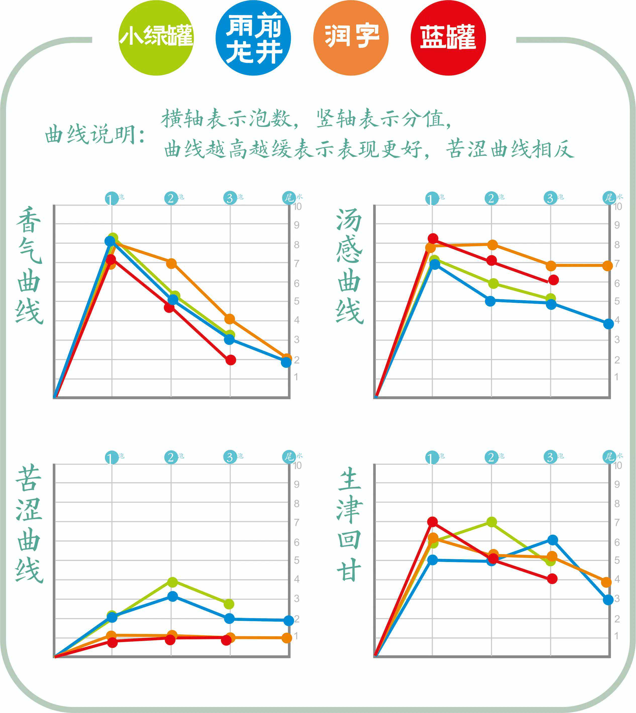 雨前银罐总体表现是最靠后的,主因是汤感表现弱和苦涩度高,好在还有香气和生津回甘上发挥,虽说价格最低,但整体口感表现却不弱其他太多。