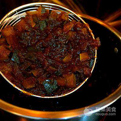 8、其间可以用勺子挤压,这样才能彻底挤汁儿,将汤汁倒入消毒过的密封瓶中,冰箱冷藏保存即可