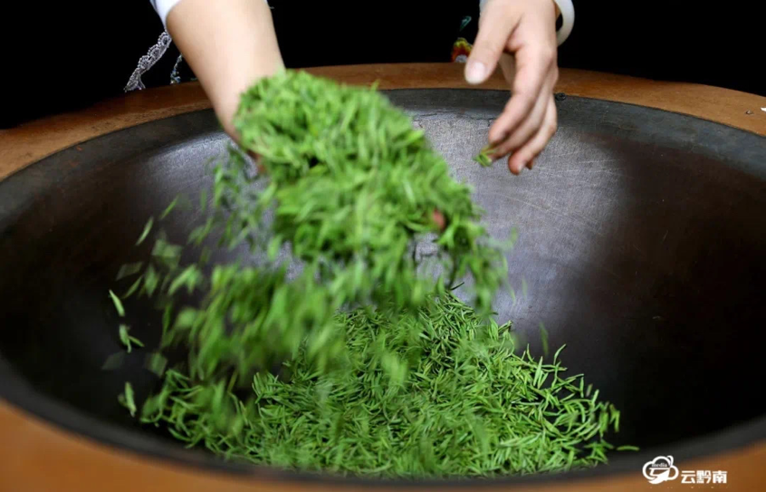 都匀毛尖是贵州的名优绿茶,特征以“绿”为主,其制作技艺分为杀青、揉捻、做形、提毫、干燥等工序,所有的操作都于锅里一气呵成。
