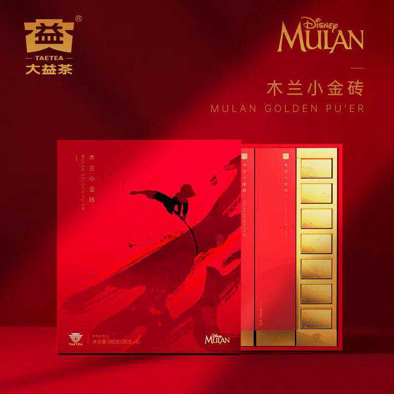 这款木兰小金砖熟茶是与迪士尼的联名款,包装红、黑、金三色交互设计,一砖一泡独立装,140g售价130元左右,当作伴手礼或差旅党外出自饮,性价比都还不错!