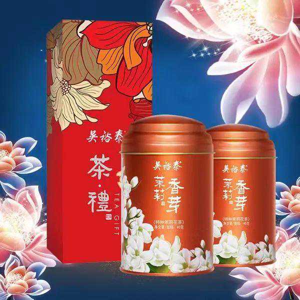商务部首批认定的“中华老字号”。这款芽头肥壮,白毫明显,比一般烘青绿茶底更加美观,茶香浓郁醇厚。红底包装印有彩绘茉莉花,灵动精美,是一款送人不出错的精致茶礼。