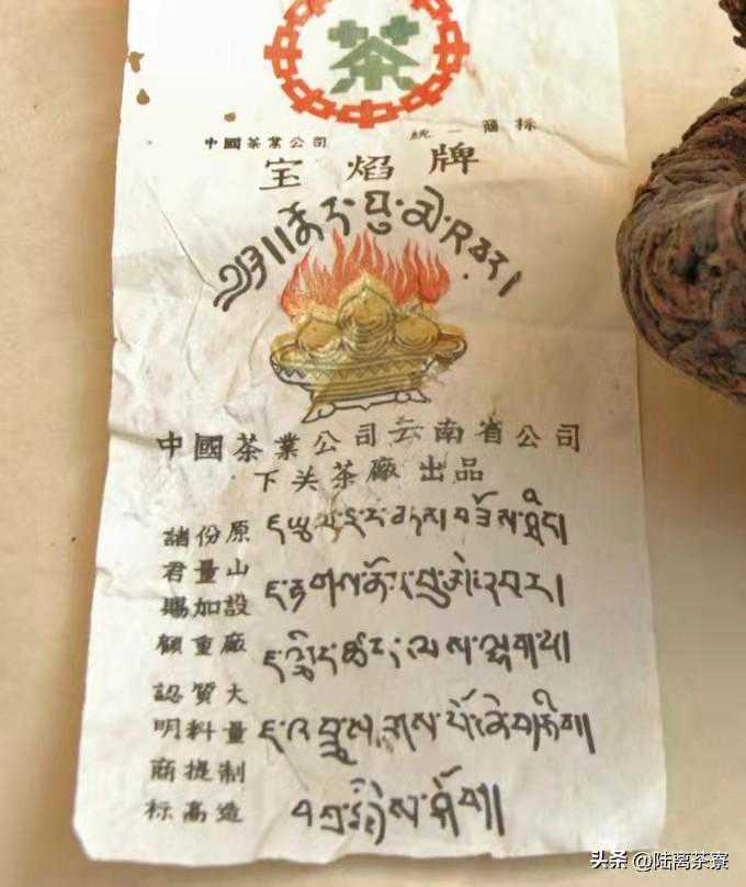建国后,康藏茶厂被新成立的中国茶业公司收编,并更名为“中国茶业公司云南省分公司下关茶厂”,归属国家贸易部,中茶司取缔了民国中茶司的十二角星标准商标,而不带有国民党色彩的宝焰牌商标,则被完完整整地继承了下来。然而,宝焰牌图案中那团象征着佛光普照的火焰,却在十余年后,成为宝焰沱停产的导火索。
