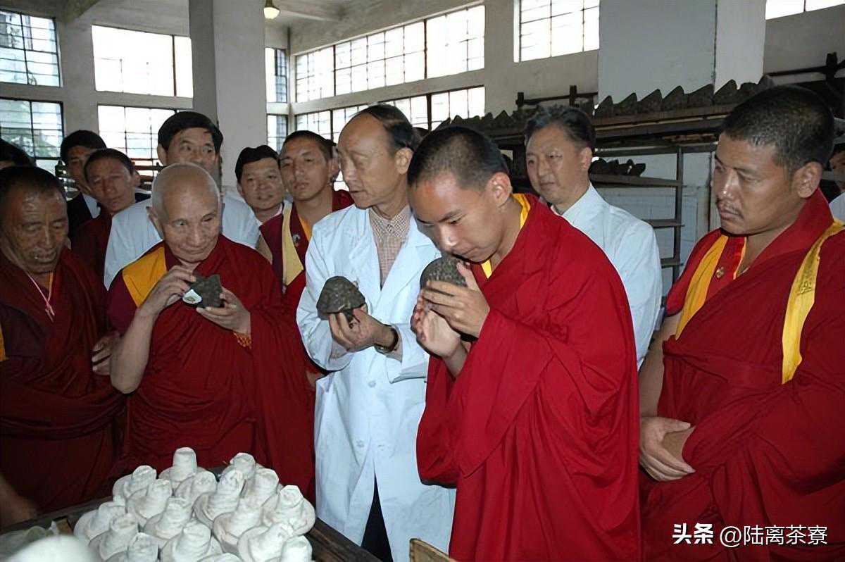 1986年10月初,下关茶厂接到了一个十分重要的接待任务:时任全国人大常委会副委员长的十世班禅额尔德尼.确吉坚赞大师将到厂里视察工作,知悉这一消息的厂领导为表达敬意,想到向大师一行的贵宾班禅大师敬赠停产至今的宝焰沱。