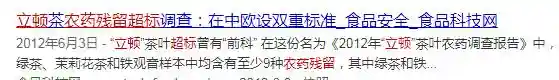 2012年,立顿被爆出农残超标的新闻。那年4月23日的调查报告显示:“立顿”的绿茶、茉莉花茶和铁观音袋泡茶,均含有被国家禁止在茶树上使用的高毒农药灭多威。